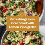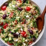 Keywords: Greek Orzo Salad, Mediterranean salad, orzo pasta salad, feta cheese salad, lemon vinaigrette, healthy salad