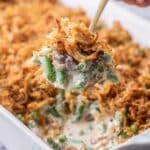 - Assemble Casserole: Transfer the green bean mixture into the prepared baking dish. Sprinkle the French fried onions evenly over the top of the casserole.