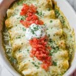Keywords: green chile chicken enchiladas, chicken enchiladas recipe, baked enchiladas, Mexican casserole, dinner recipe, easy enchiladas