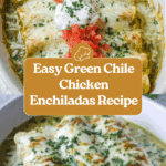 This Green Chile Chicken Enchiladas recipe features tender shredded chicken mixed with a blend of spices, sour cream, and cheese, wrapped in warm corn tortillas, smothered in zesty green chile enchilada sauce, and baked to a bubbly perfection. It’s a comforting and flavorful Mexican-inspired casserole perfect for family dinners and gatherings.