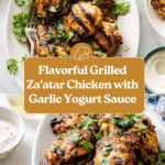 This Grilled Za’atar Chicken recipe features juicy boneless chicken thighs marinated in a fragrant blend of za’atar, fresh herbs, garlic, and lemon zest. The chicken is grilled to perfection and served with a tangy garlic yogurt sauce and fresh cilantro, making it a flavorful and refreshing dish perfect for outdoor dining or a simple weeknight meal.