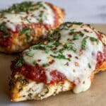 This High Protein Chicken Parmesan recipe offers a nutritious twist on the classic Italian favorite by incorporating cottage cheese for extra protein and using tenderized chicken breasts baked to perfection. It’s a flavorful, healthy dish featuring a crispy baked chicken base topped with marinara sauce, creamy cottage cheese, and freshly grated parmesan cheese. Perfect for a satisfying and protein-rich meal that’s simple to prepare.