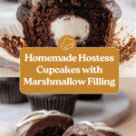 These homemade Hostess cupcakes capture the nostalgic flavor of the classic treat with rich chocolate cake, fluffy marshmallow filling, and a glossy chocolate ganache topped with delicate white icing loops. Perfect for a special occasion or an indulgent snack, they’re surprisingly easy to make at home.