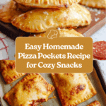 Homemade Pizza Pockets are a delicious and convenient snack or meal option featuring fresh pizza dough stuffed with classic pizza sauce and mozzarella cheese. These golden-brown pockets are baked to perfection and offer a crispy crust with a gooey, cheesy filling, perfect for customizing with your favorite toppings.