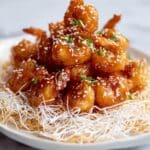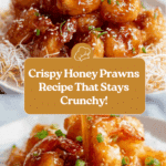 This Honey Prawns recipe delivers delightfully crispy prawns with a light, crunchy coating that stays crisp for ages. The prawns are double-fried in a light cold batter and paired with a luscious honey glaze that’s both sweet and savory. Crispy rice noodles and sesame seeds add texture and a beautiful presentation, making this dish a perfect appetizer or main course with an irresistible crunch.