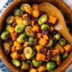 Keywords: honey roasted brussels sprouts, butternut squash side dish, roasted vegetables, autumn recipe, vegetarian side, sweet and savory vegetables