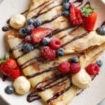 - Serve: Serve warm either rolled burrito style with ends tucked in to hold fillings, or folded into quarters topped with icing sugar, berries, whipped cream, Nutella, or your favorite toppings.
