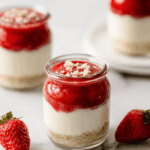 This Keto No Bake Strawberry Cheesecake Jar is a delicious and low-carb dessert that’s easy to prepare and perfect for portion control. Layered with a crumbly almond base, creamy cheesecake filling, and a fresh strawberry compote, it’s a refreshing treat without any baking required.