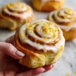 - Cool and Ice: Allow the rolls to cool for 10 to 20 minutes, then generously spoon the lemon icing over the warm rolls and sprinkle with fresh lemon zest for garnish.