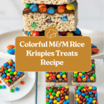 M&M Rice Krispies Treats are a colorful twist on the classic marshmallow cereal snack. With gooey melted marshmallows and bursts of chocolate candy, these treats are perfect for parties or a fun homemade dessert.