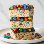 Keywords: Rice Krispies Treats, M&M Treats, marshmallow cereal bars, easy dessert, kid-friendly snack