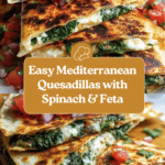 These Mediterranean Quesadillas combine fresh spinach, tangy feta, creamy mozzarella, and vibrant red onion and tomato for a flavorful and easy-to-make dish. Perfect for a quick lunch or light dinner, they feature a crispy golden tortilla exterior packed with a delicious Mediterranean-inspired filling.