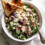 This Mediterranean tuna salad combines fresh, vibrant vegetables with creamy feta and rich tuna for a satisfying meal. Dressed in a luscious, tangy feta dressing, it’s perfect for a light lunch or a flavorful dinner.