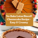 This no-bake Lotus Biscoff cheesecake is a luscious and creamy dessert that’s simple to make and packed with the irresistible flavor of Biscoff cookies and spread. Perfect for a crowd or any special occasion, it combines a crunchy cookie crust with a silky smooth filling and a glossy topping.