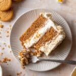- Assemble the Cake: Place one oatmeal cake layer on a cake stand or serving plate. Spread about 1 cup of the vanilla buttercream evenly over the top. Continue layering alternating cake and frosting, finishing with the last cake layer upside down for a flat surface.