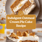 This Oatmeal Cream Pie Cake is a nostalgic and delightful layered dessert inspired by the classic oatmeal cream pie cookie. Featuring moist oatmeal cake layers filled and frosted with a rich vanilla buttercream, it’s finished with a smooth white chocolate glaze and decorated with crumbled oatmeal cream pie cookies for added texture and flavor. Perfect for celebrations or any time you want to impress with a comforting, crowd-pleasing treat.