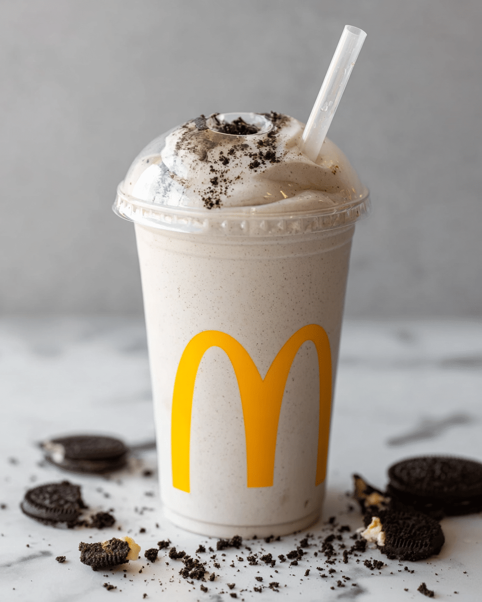 Keywords: Oreo McFlurry, McDonald’s copycat, vanilla ice cream dessert, Oreo dessert, blended ice cream treat