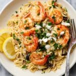 This Orzo with Shrimp and Feta recipe is a flavorful and satisfying dish perfect for a quick weeknight dinner or a special occasion. Tender shrimp, tangy feta, and bright lemon combine with tender orzo to create a Mediterranean-inspired meal everyone will love.