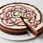 This Peppermint Bark Cookie Cake is a festive and decadent dessert featuring a rich chocolate cookie base studded with crushed candy canes, baked in a fluted tart pan, and topped with luscious white and bittersweet chocolate ganaches. Perfect for holiday celebrations, it combines a tender cocoa cookie with creamy peppermint-infused chocolate layers and a crunchy candy cane garnish.