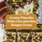 Delightfully chewy and nutty, these Pistachio and White Chocolate Rice Krispies Treats combine classic marshmallow and crispy cereal with luxurious pistachio cream, creamy white chocolate chunks, and a drizzle of rich dark chocolate, sprinkled with crunchy chopped pistachios for a sophisticated twist on a beloved childhood snack.