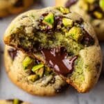These Pistachio Cream Cookies combine a tender, buttery dough with a luscious pistachio cream center for a delightful treat. Chocolate chunks and chopped pistachios add texture, while a sprinkle of flaky salt balances the sweetness perfectly.