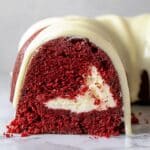 Keywords: Red Velvet Cake, Cheesecake Swirl, Bundt Cake, Cream Cheese Icing, Dessert, Holiday Cake