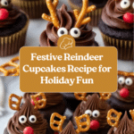 These Reindeer Cupcakes bring festive fun and chocolatey delight to any celebration. Soft cocoa cupcakes topped with creamy chocolate frosting are decorated with pretzel antlers, red candy noses, and edible eyes to create an adorable holiday treat.