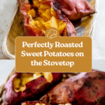 Store any leftover roasted sweet potatoes in an airtight container in the refrigerator for up to 3 days. To reheat, warm them in a microwave or oven until heated through. Avoid reheating wrapped in foil on the stovetop to prevent any risk of burns or uneven heating.