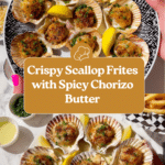 Scallop Frites is a sophisticated take on the classic French dish, featuring crispy shoestring fries paired with tender scallops broiled in a rich chorizo-infused butter sauce. This recipe combines the textures of perfectly fried potato sticks with the deep, savory flavors of Spanish chorizo, fresh herbs, and citrusy lemon toppings. Ideal as a gourmet appetizer or elegant main course, it’s complemented by a zesty dijonaise for dipping the fries, making it a flavorful and impressive meal.