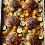 This Sheet Pan Maple Mustard Roasted Chicken recipe combines tender chicken thighs with a sweet and tangy maple mustard glaze, roasted alongside fresh green beans for a simple yet flavorful one-pan meal. Perfect for an easy weeknight dinner, this dish delivers a delicious balance of sweet, savory, and aromatic spices with minimal cleanup.