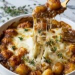 Keywords: baked gnocchi, French onion gnocchi, caramelized onion recipe, easy comfort food, cheesy baked gnocchi