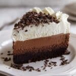 Sky High Chocolate Mousse Pie is a decadent layered dessert featuring a crunchy Oreo crust, a rich milk chocolate and Greek yogurt bottom layer, a creamy peanut butter chocolate mousse middle layer, and a smooth cream cheese whipped topping. This no-bake pie is frozen to create a light yet indulgent treat perfect for chocolate lovers.