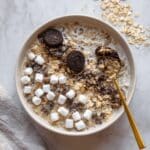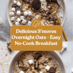 A delicious and easy-to-make breakfast featuring creamy overnight oats infused with the classic s’mores flavors of marshmallows, graham cracker crumbs, and chocolate, perfect for a no-cook, grab-and-go meal.