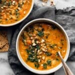 Keywords: spicy peanut soup, sweet potato soup, kale soup, coconut milk soup, vegetarian soup, hearty soup, healthy soup