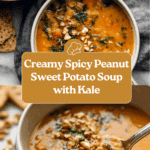 A comforting and flavorful Spicy Peanut Soup featuring sweet potatoes and kale, enriched with creamy coconut milk and a kick of jalapeño. This hearty soup combines aromatic spices and peanut butter for a rich, creamy texture perfect for a cozy meal.