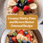 This Sticky Date and Brown Butter Oatmeal is a comforting and flavorful breakfast option featuring nutty brown butter, naturally sweet Medjool dates, and creamy oats. Enhanced with warm spices like cinnamon or cardamom and topped with flaky sea salt and fresh fruit, it’s a delightful way to start your day with a satisfying, naturally sweetened meal.
