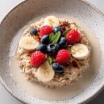 - Finish and Serve: Remove the oatmeal from heat. Sprinkle a pinch of flaky sea salt on top to enhance the flavors. Serve the oatmeal in warm bowls topped with fresh fruit and, if desired, a splash of heavy cream for extra richness. Enjoy immediately while warm and fragrant.