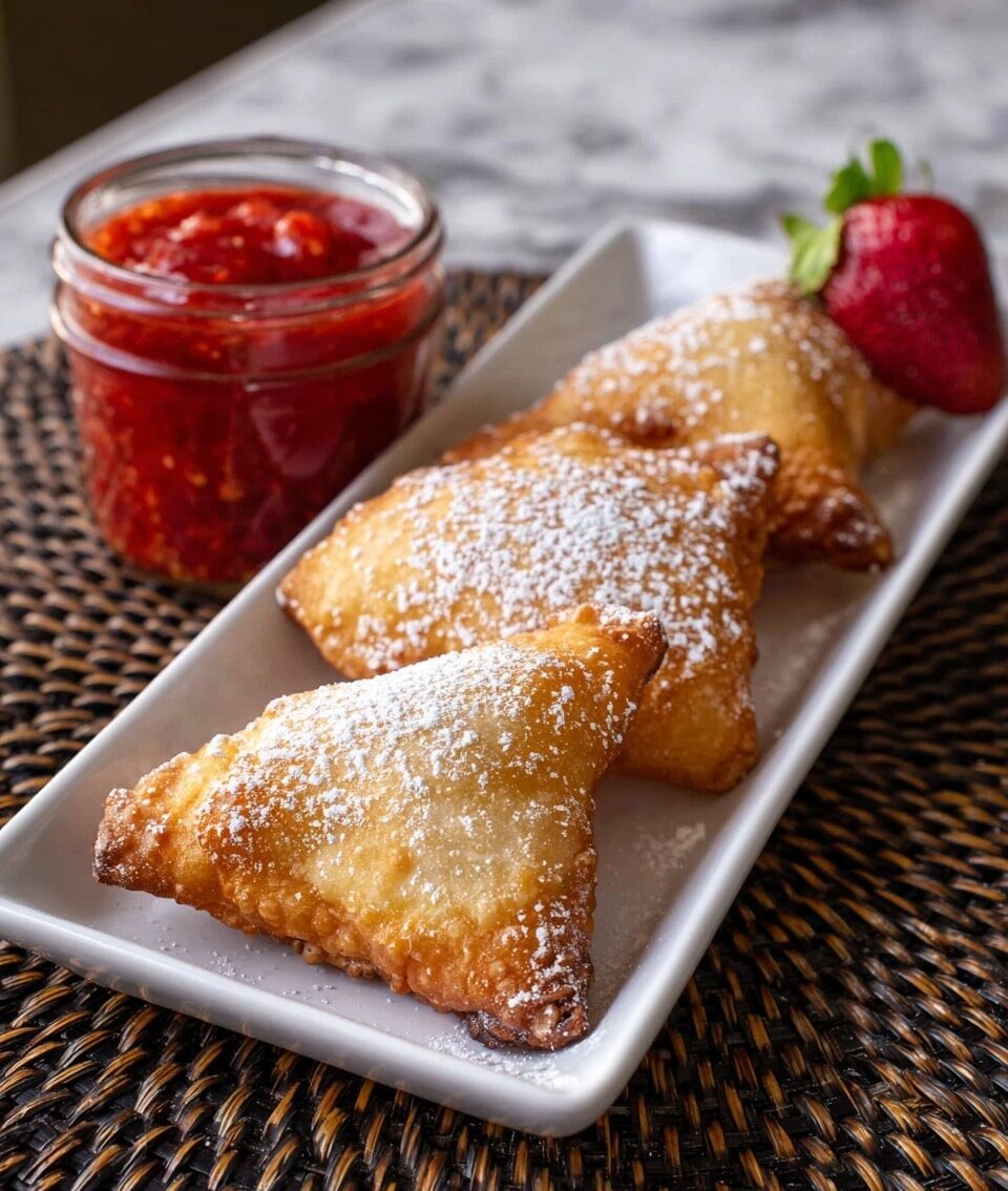 These Strawberry Cheesecake Wontons are a delightful fusion dessert combining creamy cheesecake filling with sweet strawberry sauce, all wrapped in crispy, golden wonton wrappers and deep-fried to perfection. They offer a perfect bite-sized indulgence with a luscious strawberry topping that adds freshness and vibrant flavor.