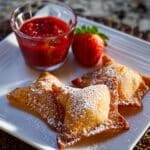 These Strawberry Cheesecake Wontons are a delightful fusion dessert combining creamy cheesecake filling with sweet strawberry sauce, all wrapped in crispy, golden wonton wrappers and deep-fried to perfection. They offer a perfect bite-sized indulgence with a luscious strawberry topping that adds freshness and vibrant flavor.