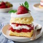 This classic Strawberry Shortcake recipe features tender, lemon-infused biscuits made with a combination of flour and cornmeal, layered with fresh sliced strawberries and fluffy whipped cream. Perfectly sweet and refreshing, it’s a delightful dessert that showcases the flavors of summer berries with a hint of citrus zest.