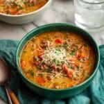 Keywords: stuffed pepper soup, ground beef soup, stuffed pepper recipe, comforting soup, weeknight dinner, cheddar cheese soup, easy dinner recipe