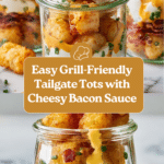 Tailgate Tots are a delicious and crowd-pleasing appetizer perfect for any game day or casual gathering. Crispy grilled tater tots are layered with a rich homemade cheddar cheese sauce, crispy bacon, sour cream, and fresh chives, creating a satisfying and indulgent snack that’s easy to make on the grill.