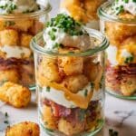 Tailgate Tots are the ultimate game day treat, combining crispy tater tots with rich cheese sauce, smoky bacon, and fresh chives. This layered snack is perfect for sharing and sure to be a crowd-pleaser at any gathering.