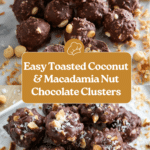 Keywords: Toasted coconut clusters, macadamia nut treats, chocolate nut clusters, no bake dessert, easy chocolate snacks, homemade chocolate clusters