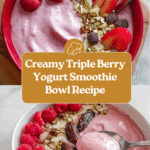 This Triple Berry Yogurt Smoothie Bowl is a refreshing and nutrient-packed way to start your day or enjoy a healthy snack. Blended with creamy Greek yogurt and a mix of frozen berries, it offers a delicious balance of sweetness and tartness.