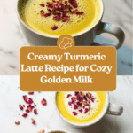 A comforting and healthful Turmeric Latte, also known as Golden Milk, combines warm almond milk with anti-inflammatory spices like turmeric, ginger, cinnamon, and black pepper. This cozy beverage is naturally sweetened with optional honey and garnished with dried rose petals and cinnamon for a fragrant finish.