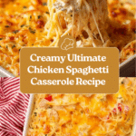 Ultimate Chicken Spaghetti is a creamy, cheesy casserole that’s both comforting and satisfying. This dish combines tender shredded chicken, melted cheeses, and spaghetti for an easy dinner the whole family will love.