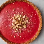 A delicious vegan and gluten-free cranberry tart featuring a crisp hazelnut-date crust and a velvety coconut cream cranberry filling. This tart balances tart cranberries with sweetened coconut cream, making it a perfect festive dessert for holiday gatherings or any special occasion.
