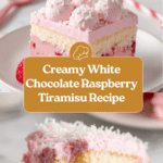 This White Chocolate Raspberry Tiramisu is a delightful twist on the classic Italian dessert, combining tangy raspberry syrup-soaked ladyfingers with a creamy mascarpone and white chocolate filling. Refreshingly fruity yet decadently smooth, this no-bake dessert is perfect for special occasions or a sophisticated treat.